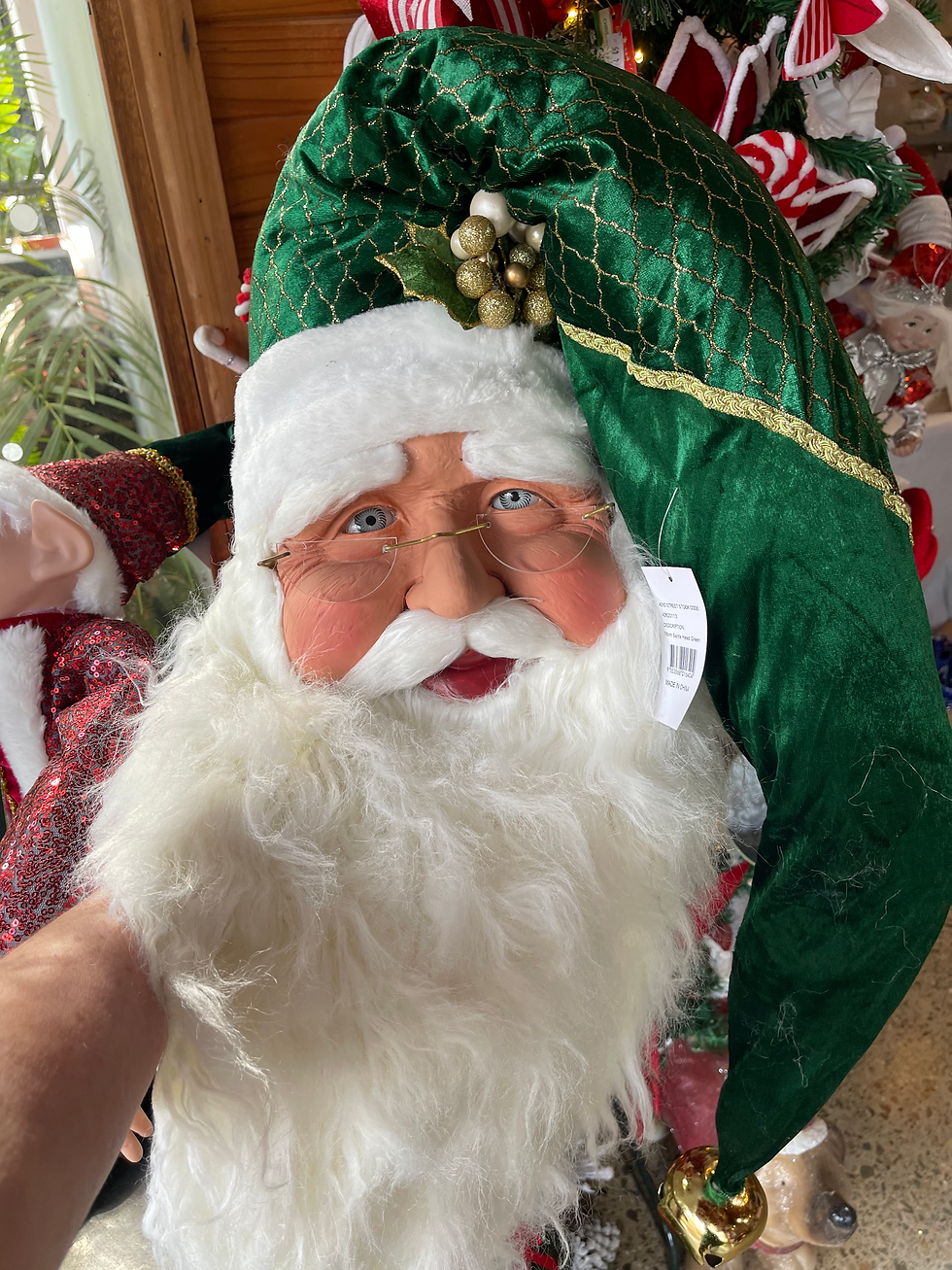 Traditional Hanging Santa Face with green Luxe hat for your wall or door